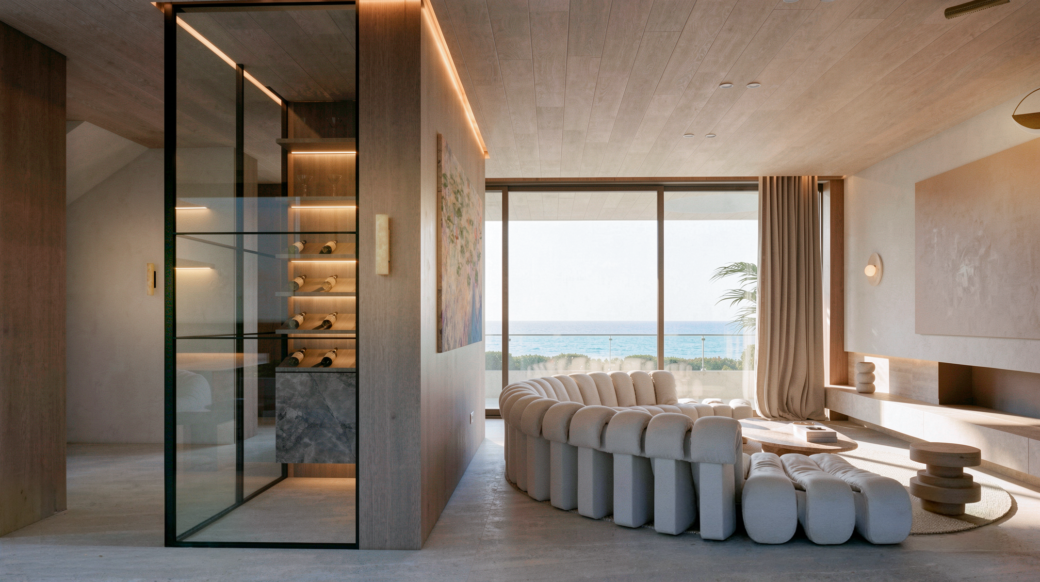 Duet is a distinctive architectural project comprising two carefully designed homes in Ōrākei, overlooking the basin. One residence has been created for a private client, while the second is scheduled for release to the market in late 2026. Each home spans approximately 380 square metres and features five bedrooms, a dedicated guest wing, and a basement-level cinema room connected to an outdoor pool. The mid-level living areas extend seamlessly onto a balcony that captures expansive views, while a sculptural curved staircase and integrated lift connect all three levels.